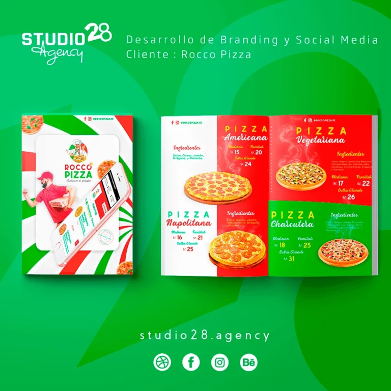 Confié en Studio28 para desarrollar todo el branding de mi pizzería digital Rocco Pizza, y fue una de las mejores decisiones que pude tomar.