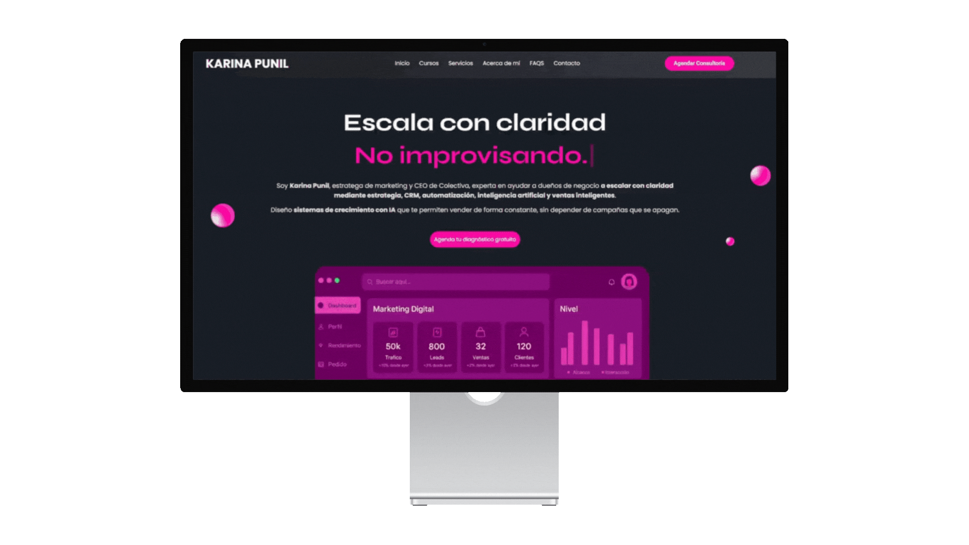 "La agencia Studio 28 desarrolló mi página web de Karina Punil MKT y quedé encantada. Fueron súper puntuales, detallistas y pacientes durante todo el proceso. Me entregaron un diseño bonito, funcional y totalmente alineado a mi marca. Además, siempre tuvieron la mejor disposición para ajustar y mejorar cada detalle.